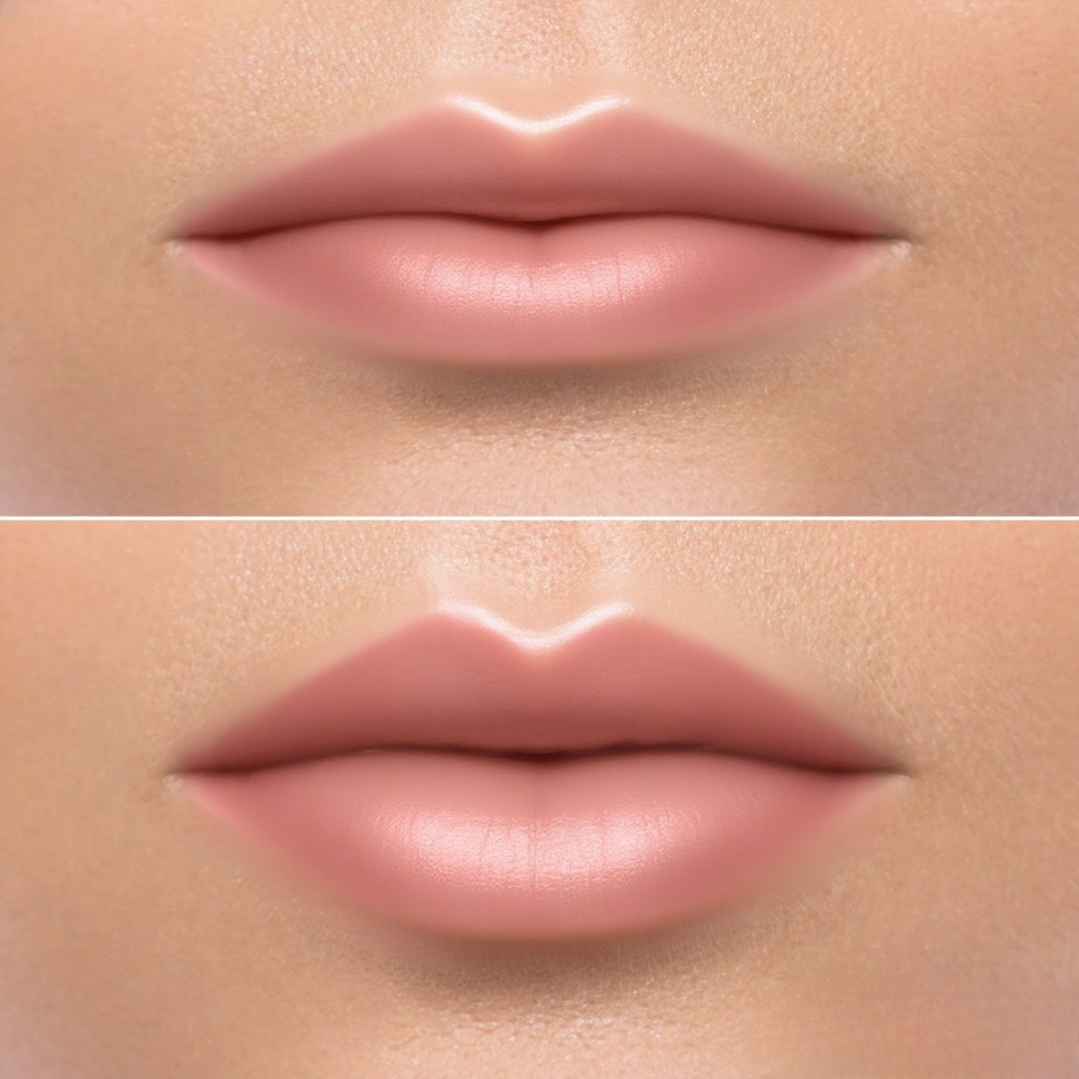 Detta leder till ökad produktion av kollagen och elastin, två proteiner som gör läpparna jämnare och fylligare.